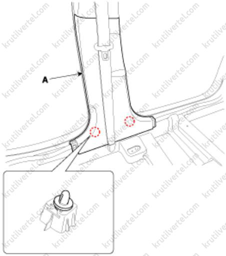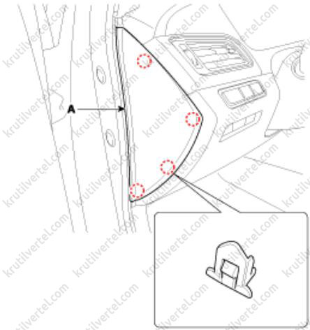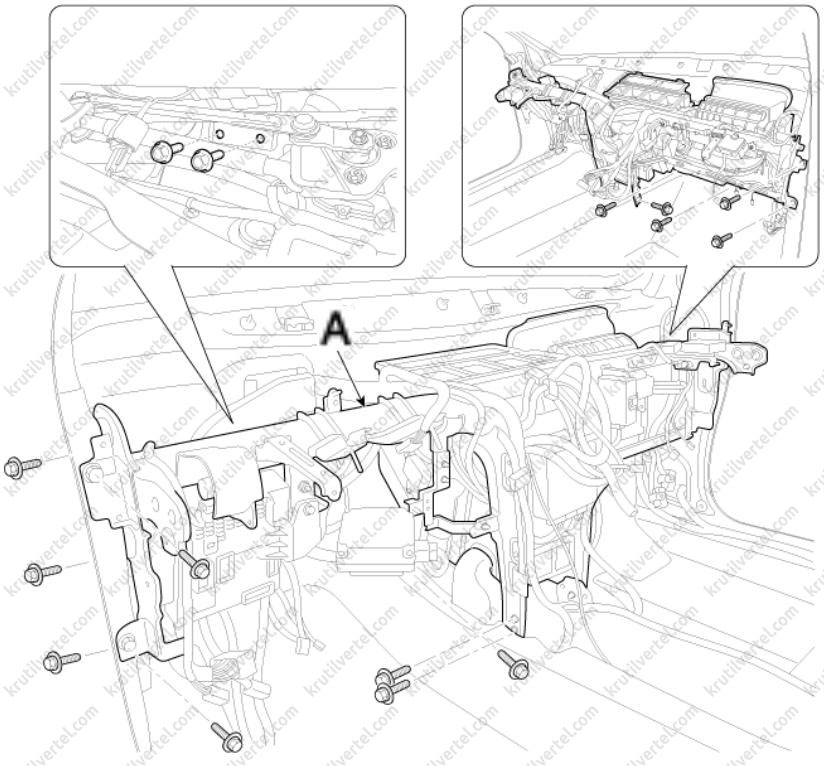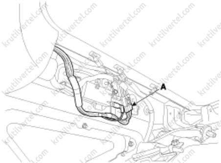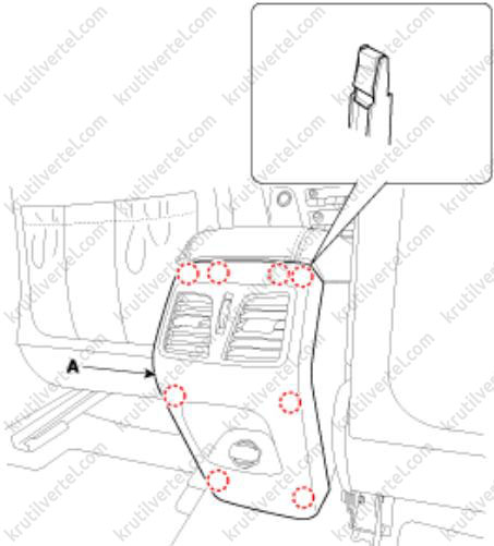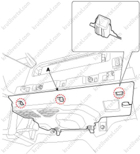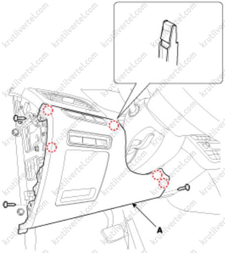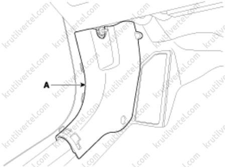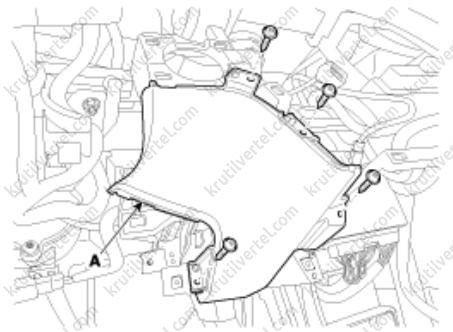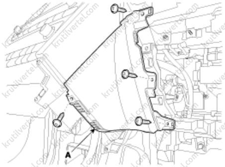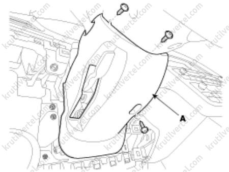 3. Отверните винты крепления и затем снимите нижнюю крышку передней панели со стороны водителя (А).