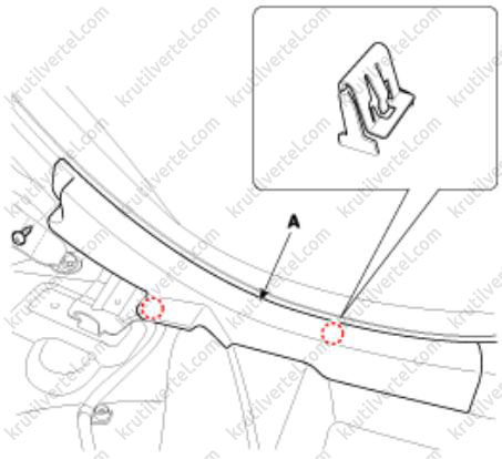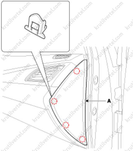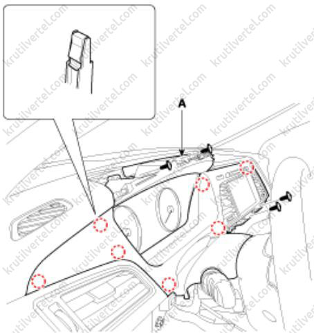 3. Отверните винты крепления и затем снимите декоративную накладку (А) передней панели с правой стороны.