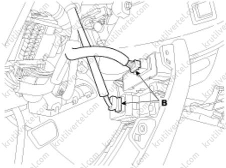 1. Снимите нижнюю крышку передней панели со стороны водителя.