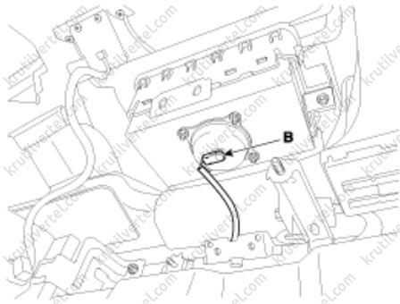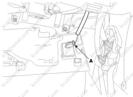 9. Отсоедините электрический разъем (A) плафона освещения перчаточного ящика.