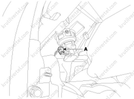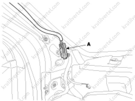 2. Отсоедините электрический разъем (А) внутреннего зеркала заднего вида.