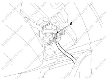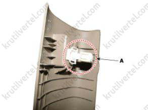 2. Отсоедините электрический разъем (А) плафона освещения косметического зеркала.