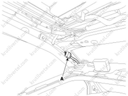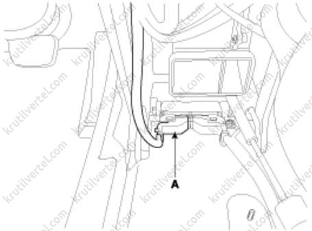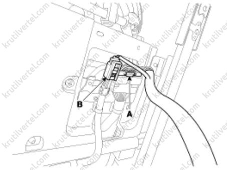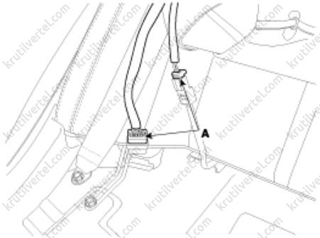 2. Отсоедините электрический разъем (А) подогрева подушки сиденья.