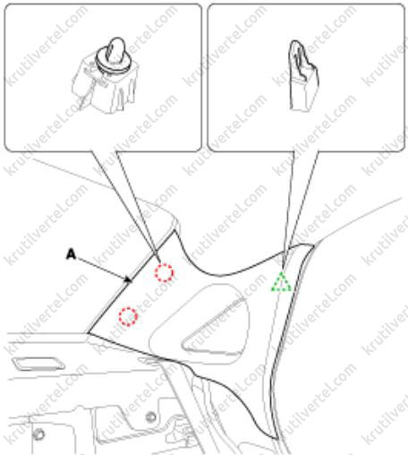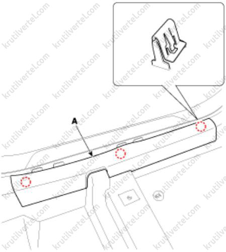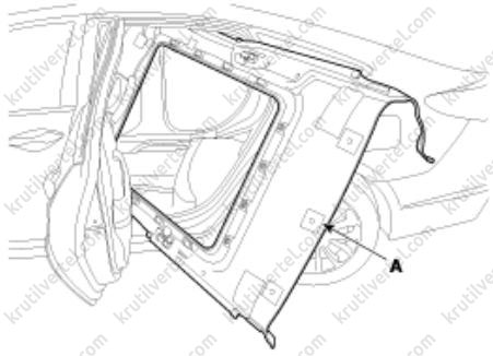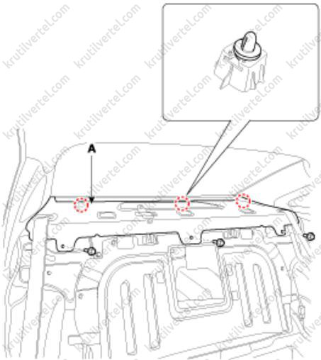 4. Отверните болты крепления и затем снимите центральную накладку перегородки багажного отделения (А).
