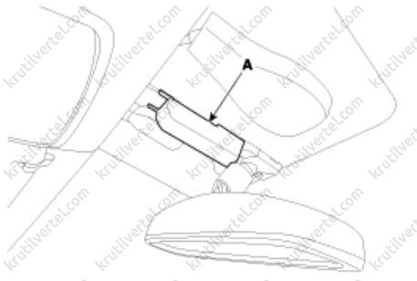 1. Снимите крышку (А) внутреннего зеркала заднего вида.