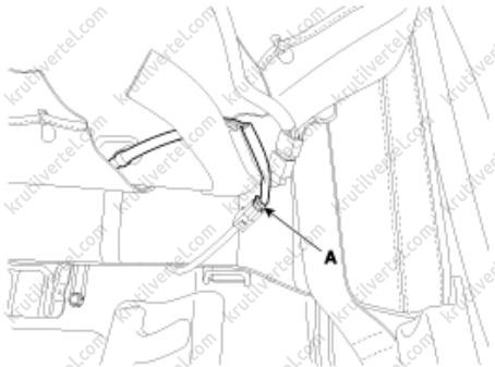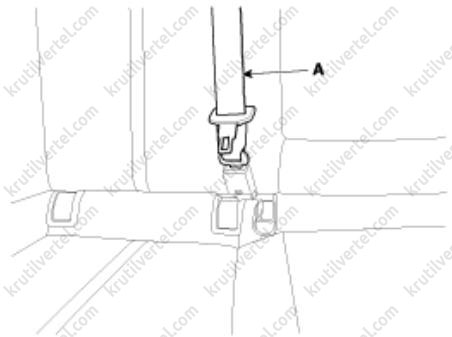 2. Отсоедините ремень безопасности заднего центрального сиденья (А).