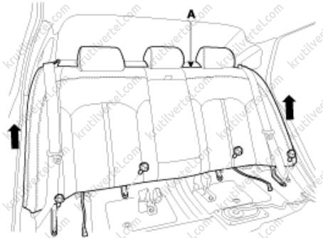 3. Отверните болты крепления и снимите спинку заднего сиденья (А) потянув ее вверх.