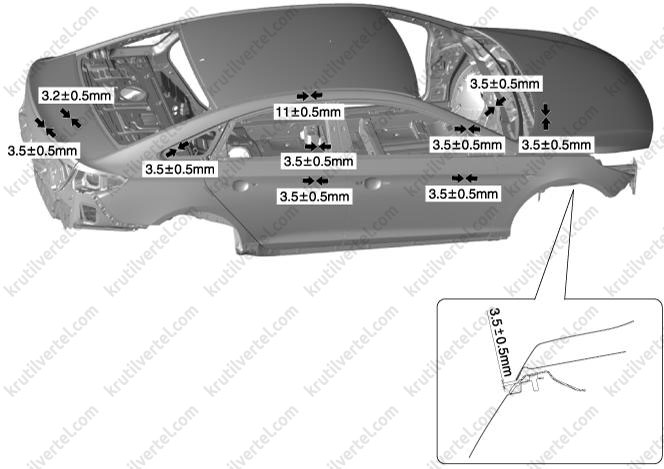 Кузовные размеры и зазоры Hyundai Sonata LF с 2014 года (+ обновления 2017 года)