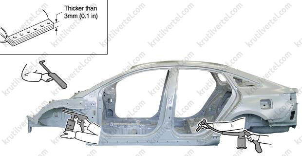 8. При использовании газового резака действуйте осторожно, чтобы не повредить кузовной герметик или салон. В случае их возгорания немедленно потушите огонь.