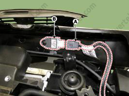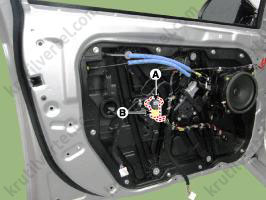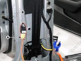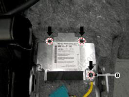 - При установке болта крепления SRSCM подсоедините провод «массы» (B).