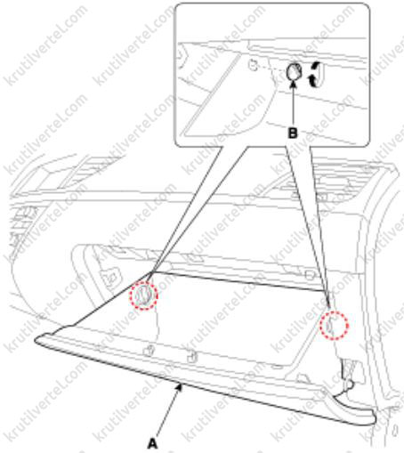 2. Снимите нижнюю крышку передней панели со стороны пассажира.