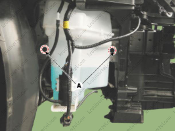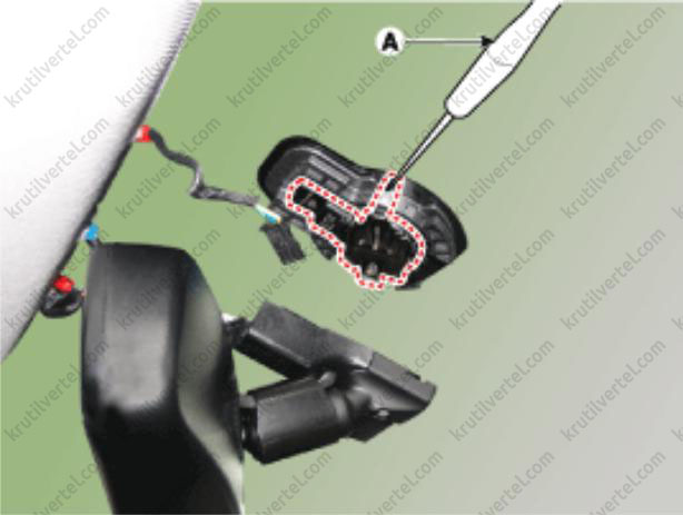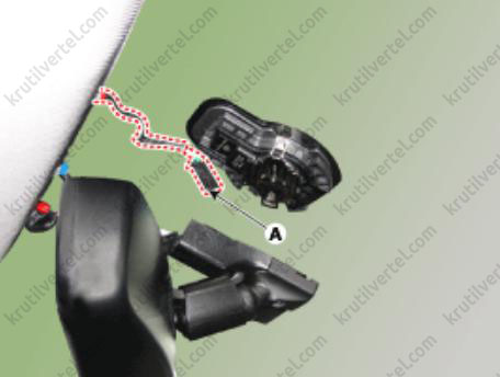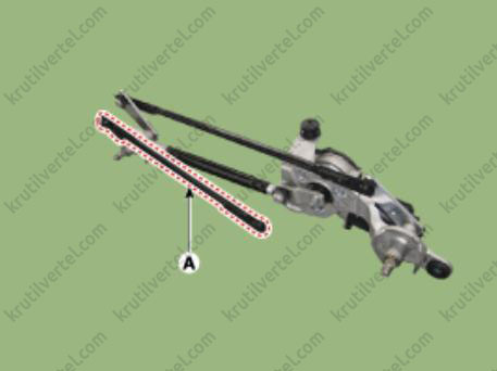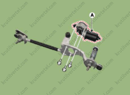 5. Отсоедините электрический разъем электродвигателя стеклоочистителя и снимите электродвигатель в сборе с тягами (А).