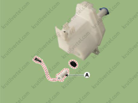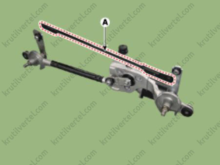 7. Снимите нижнюю тягу (А) с кривошипа электродвигателя стеклоочистителя.