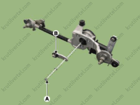 6. Удерживая кривошип электродвигателя стеклоочистителя, снимите верхнюю тягу (A).