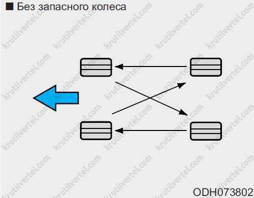Для выравнивания износа протектора рекомендуется переставлять колеса через каждые 12 000 км пробега или ранее, если происходит неравномерный износ.
