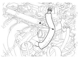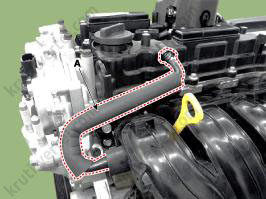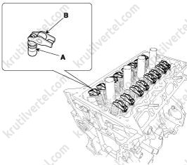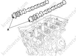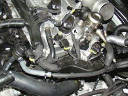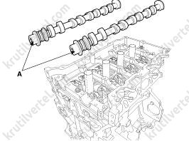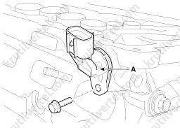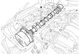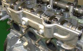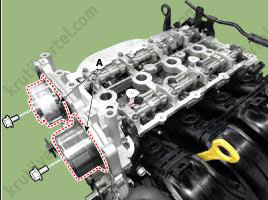 14. Снимите датчик положения распределительного вала (CMPS) впускных клапанов (A).