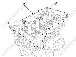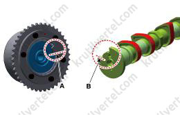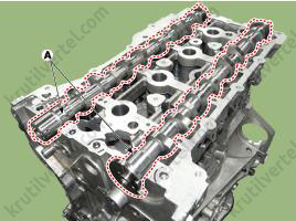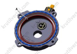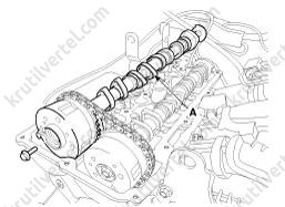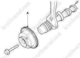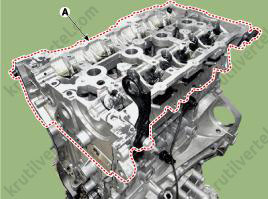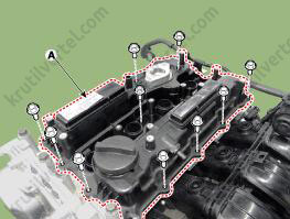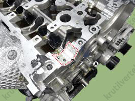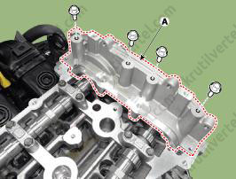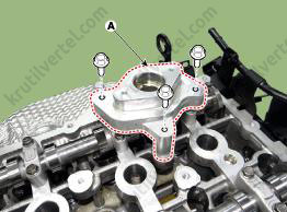 - Медленно нажимайте на крышку E-CVVT (А), пока она не окажется заподлицо с поверхностью крышки цепи привода газораспределительного механизма.