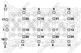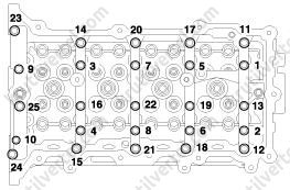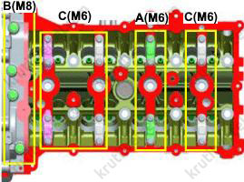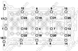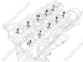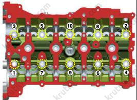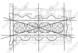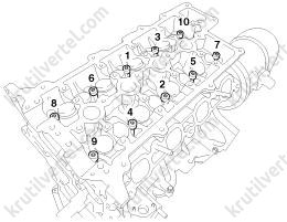 3. Закрутите болты крепления головки блока цилиндров: