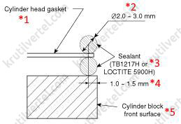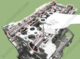 - После нанесения герметика соберите головку блока цилиндров в течение пяти минут.