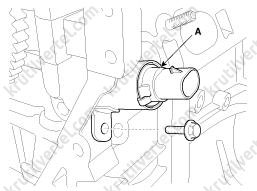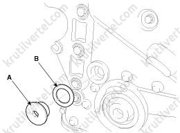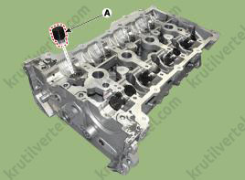 - Используя специальный инструмент (№09243-C2000), вставьте заглушку (A) в отверстие на крышке E-CVVT.