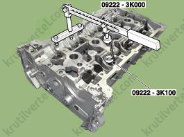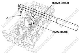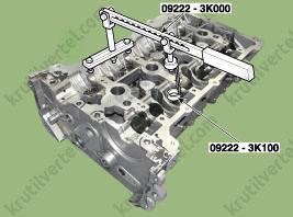 - Используя специальные инструменты (№ 09222-3K000 и №09222-3K100), сожмите пружину клапана и снимите сухари клапана.