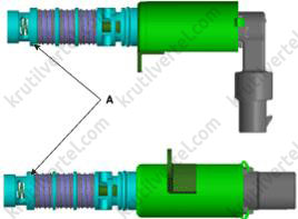 13. Используя ключ Torx, снимите регулятор масла (OCV) (A) выпускных клапанов.