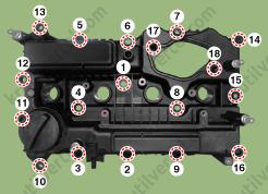Момент затяжки: 32,4 - 36,3 Н·м (1-й шаг) + доверните на 90° - 95° (2-й шаг) + доверните на 90° - 95° (3-й шаг).