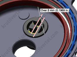 - Рассчитайте глубину запрессовки (3) = (2) - (1) заглушки электродвигателя. Если она не соответствует 1,9 – 2,1 мм, выполните повторную регулировку после замены заглушки E-CVVT.