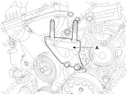 6. Снимите рычаг (А) натяжителя цепи привода газораспределительного механизма.