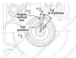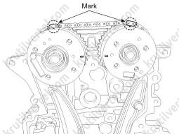 Проверьте метки ВМТ (верхних мертвых точек) коленчатого вала и звездочек CVVT.