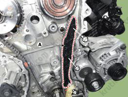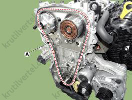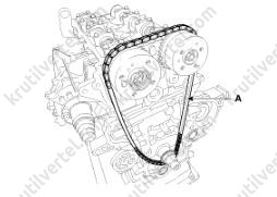 6. Снимите цепь (А) привода газораспределительного механизма.