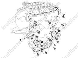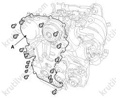 13. Равномерно отверните болты крепления и снимите крышку (А) цепи привода газораспределительного механизма, аккуратно поддевая части между головкой блока цилиндров и самим блоком цилиндров.