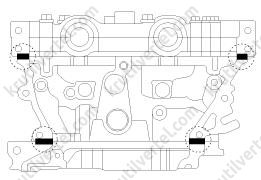 - Перед установкой крышки цепи привода газораспределительного механизма нанесите прокладочный герметик Threebond 1217H или аналогичный в зазор между держателем распределительного вала, головкой блока цилиндров и блоком цилиндров.
