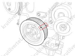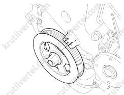 1. Поверните шкив виброгасителя коленчатого вала по часовой стрелке и совместите его канавку с меткой синхронизации на крышке цепи привода газораспределительного механизма.