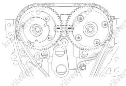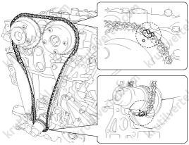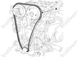 - Последовательность установки цепи: звездочка коленчатого вала → направляющая цепи привода газораспределительного механизма → звездочка CVVT впускных клапанов → звездочка CVVT выпускных клапанов.
