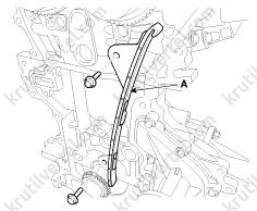 6. Установите рычаг (А) натяжителя цепи привода газораспределительного механизма. Момент затяжки: 9,8 – 11,8 Н·м.