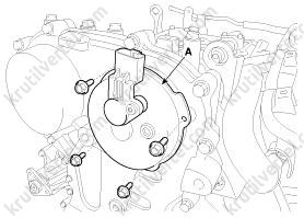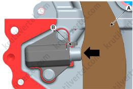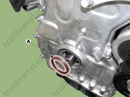 - Проверьте, не поврежден ли сальник (А), и замените поврежденную крышку E-CVVT.