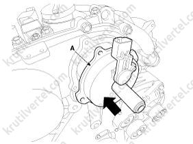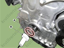 - Если в ходе проверки E-CVVT не обнаружено никаких проблем, замените уплотнительное кольцо (А).