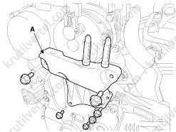10. Отверните болты крепления и снимите опорный кронштейн (A) двигателя.