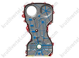 - Нанесите прокладочный герметик Loctite 5900H или аналогичный на крышку цепи привода газораспределительного механизма. Крышку необходимо установить в течение пяти минут после нанесения герметика. Для предупреждения образования возможного пути утечки масла герметик необходимо наносить непрерывной полосой.