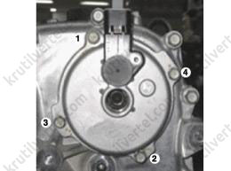 - Затяните болты до указанного момента в нижеуказанной последовательности. Момент затяжки: 9,8 – 11,8 Н·м.