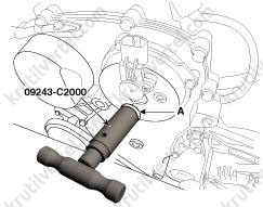 - Используя специальный инструмент (№09243-C2000), вставьте заглушку (A) в отверстие на крышке E-CVVT.