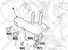 Момент затяжки: 40 - 45 Н·м (болты B) и 20 - 25 Н·м (болт C).
