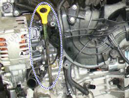 - Не используйте повторно уплотнительное кольцо направляющей измерительного щупа уровня масла.