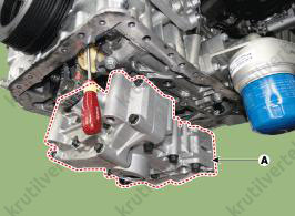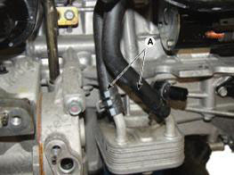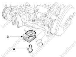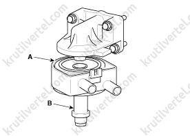 4. Отверните болт крепления (А) и снимите узел маслоохладителя (В).