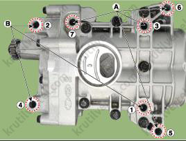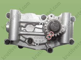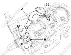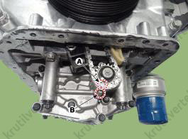 3. При необходимости снимите фильтр грубой очистки масла (А) и прокладку (В).