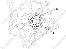 5. С помощью щупа измерьте зазор между вешним ротором и корпусом. Если зазор больше максимального значения (0,240 – 0,332 мм), замените роторы комплектом. При необходимости, замените крышку цепи привода газораспределительного механизма.