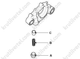 1. Выверните пробку (A) и снимите пружину (B) и плунжер (C) перепускного клапана.