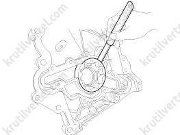 2. Проверьте техническое состояние плунжера перепускного клапана. Нанесите на плунжер моторное масло и убедитесь в том, что оно плавно стекает в отверстие для плунжера под действием собственного веса. При необходимости, замените крышку цепи привода газораспределительного механизма.
