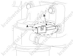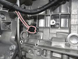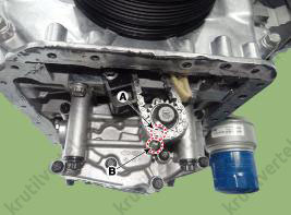 1. Отсоедините электрический разъем (А) и затем снимите датчик давления масла (В).